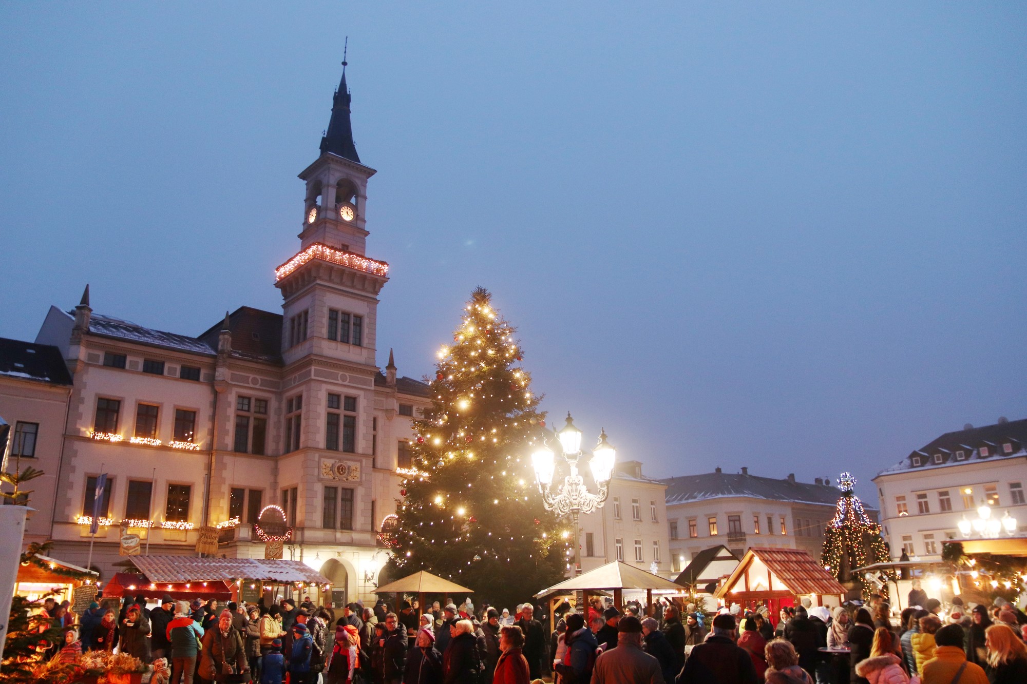 Adventseinsingen auf den Stufen der Jakobikirche Oelsnitz
