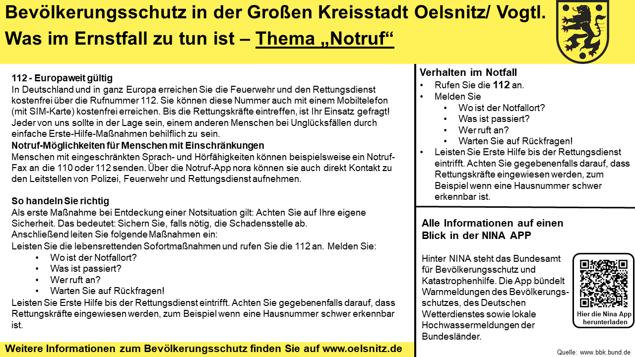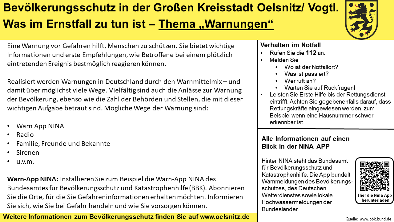 Weitere Informationen finden Sie auf der Website des Bundesamtes für Bevölkerungsschutz und Katastrophenhilfe www.bbk.bund.de